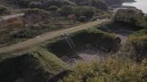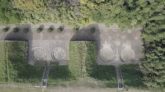 나무 너머로 보이는 외양포 포진지 포좌